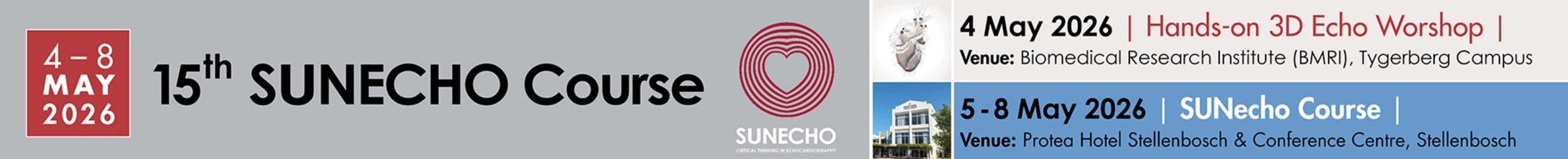 SUNECHO 2026, will again be hosted at the Protea Hotel, Stellenbosch, amongst the beautiful vineyards of our university town. The course will provide a good foundation for the development of your echocardiography skills and add novel information aimed at improving knowledge and skills of even the most experienced echocardiographers amongst you. We once again have an exceptional faculty who will be sharing their knowledge, experience and expertise in a course known for its characteristic Stellenbosch University hospitality.